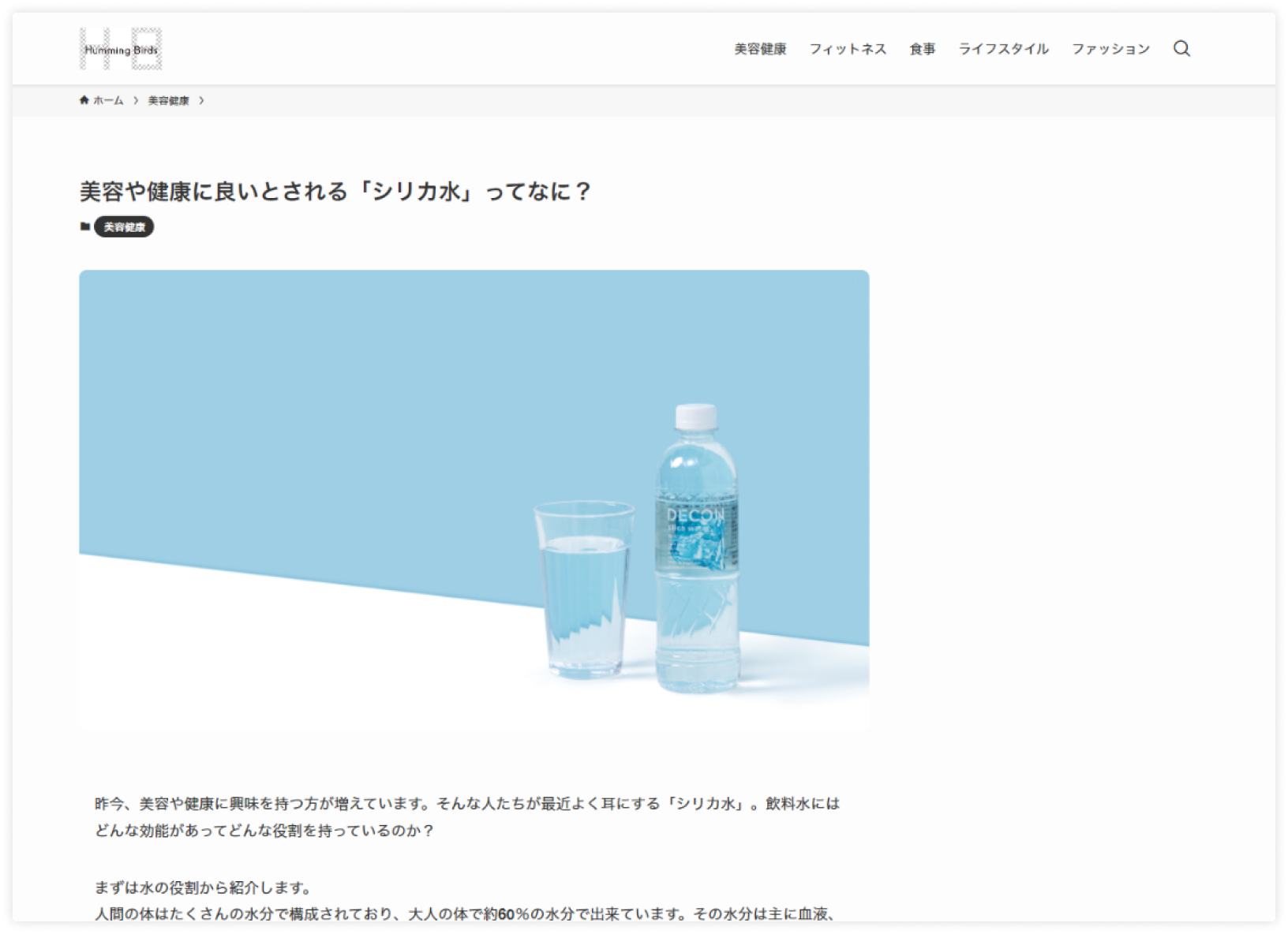 スポーツ×ファッションのライフスタイルWEBメディア「Humming Birds(ハミングバーズ)」に、シリカウォーターが掲載されました。