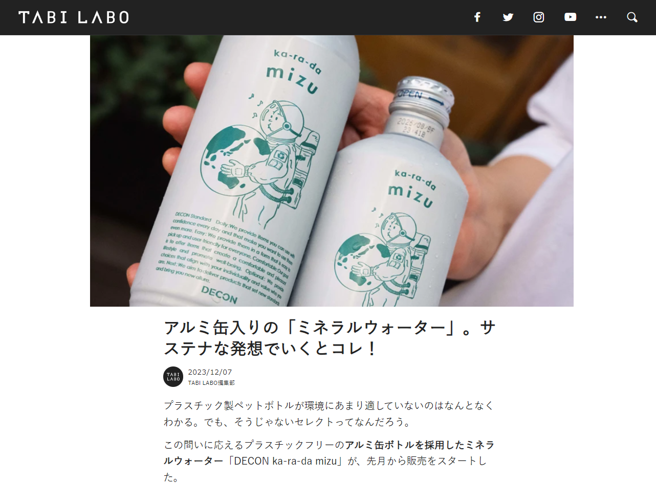 新しい価値観や気づきに出会うことができるWEBメディア「TABI LABO」に、『DECON ka-ra-da mizu』が掲載されました。